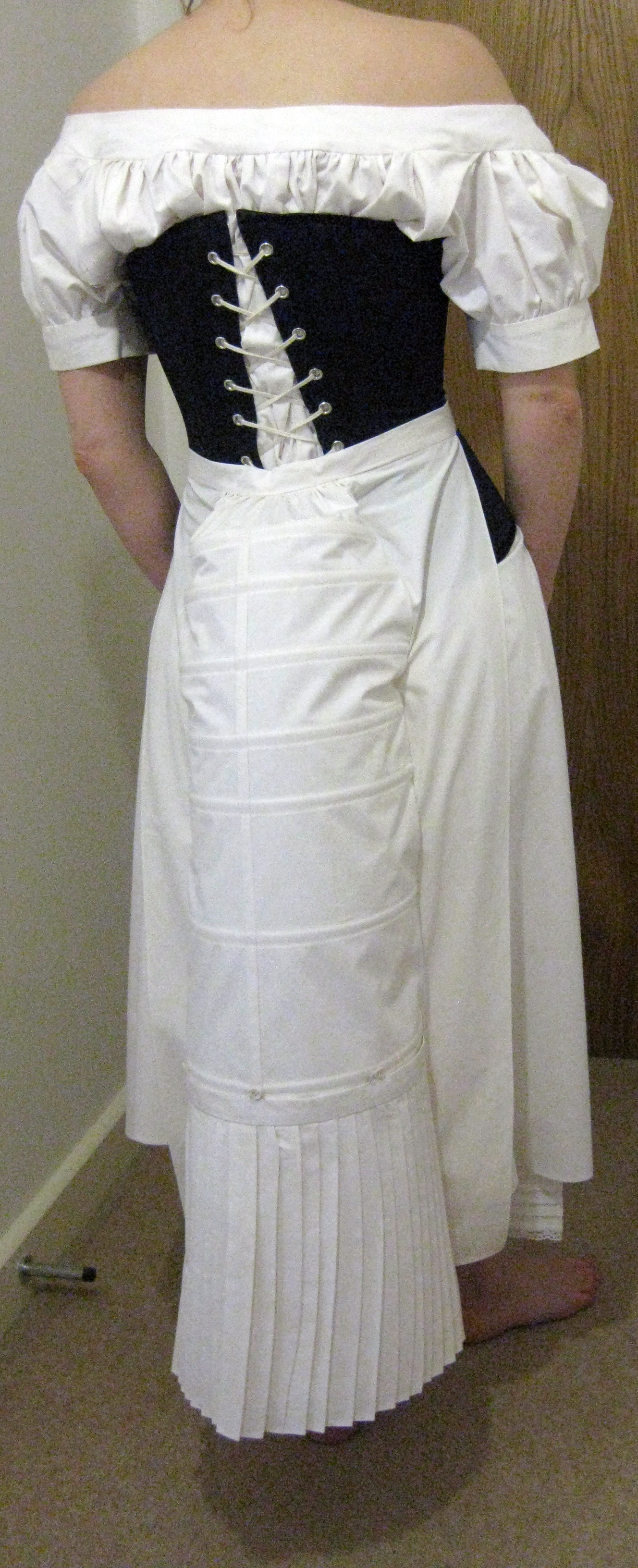 So here we are I have reached the end!!!!!!! Wow… My main comment on this petticoat is the way it makes me stand, it gives the beginning of the shape that we associate with this period. I also love the way it rustles when I walk. The length is also border-line but with some heals it will be prefect. All round I am extremely happy!!! I would finally like to thank everyone again I have mentioned in this post. 😀