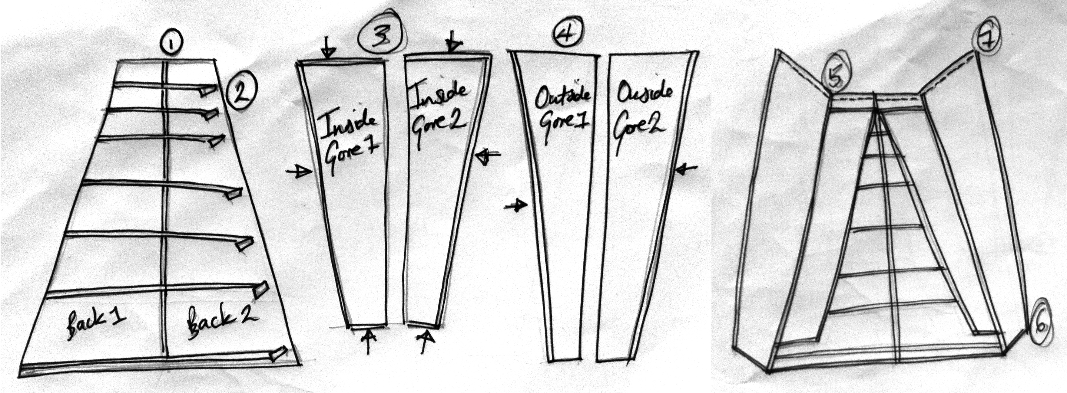 If I were drafting this out onto paper, follow the books instructions and photo-copy and join the scales together and use as a Tape measure. There are 4x pieces, which you cut 2x of each, seam allowance for a change has been added (1/2 Space Seam).. HORRAY!!